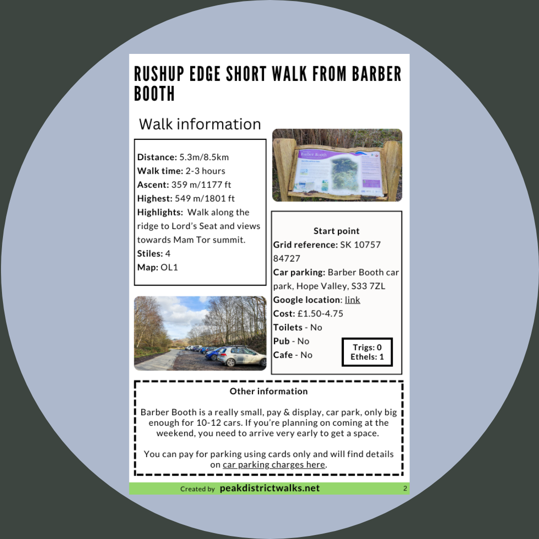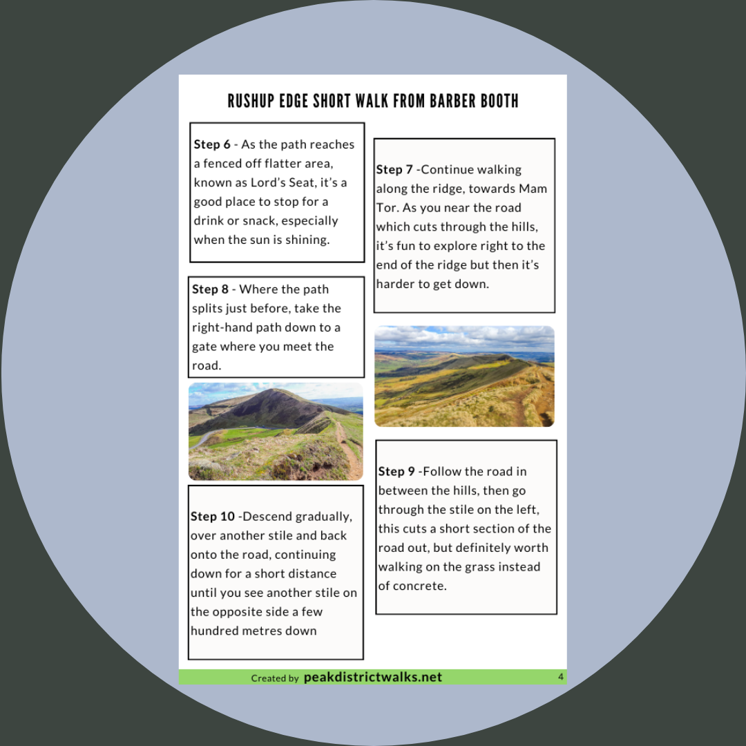 Rushup Edge Short Walk From Barber Booth. Printable A4 PDF which includes walk summary, important information, map, plus step-by-step instructions for the walk. Also handy to download the PDF offline to your Smartphone to take on your walks.